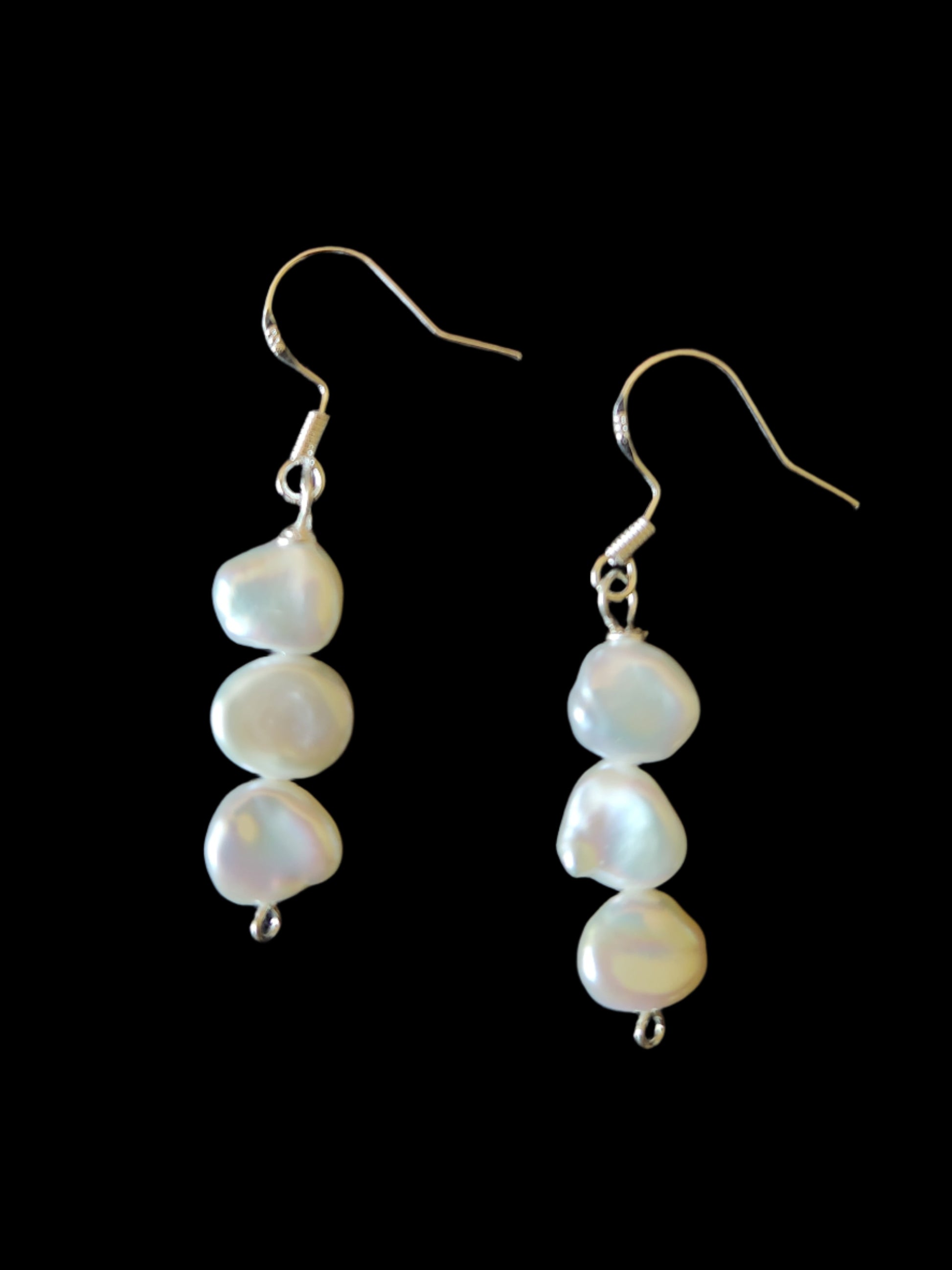 Triple beaded drop earrings with keshi pearls' signature lustre.