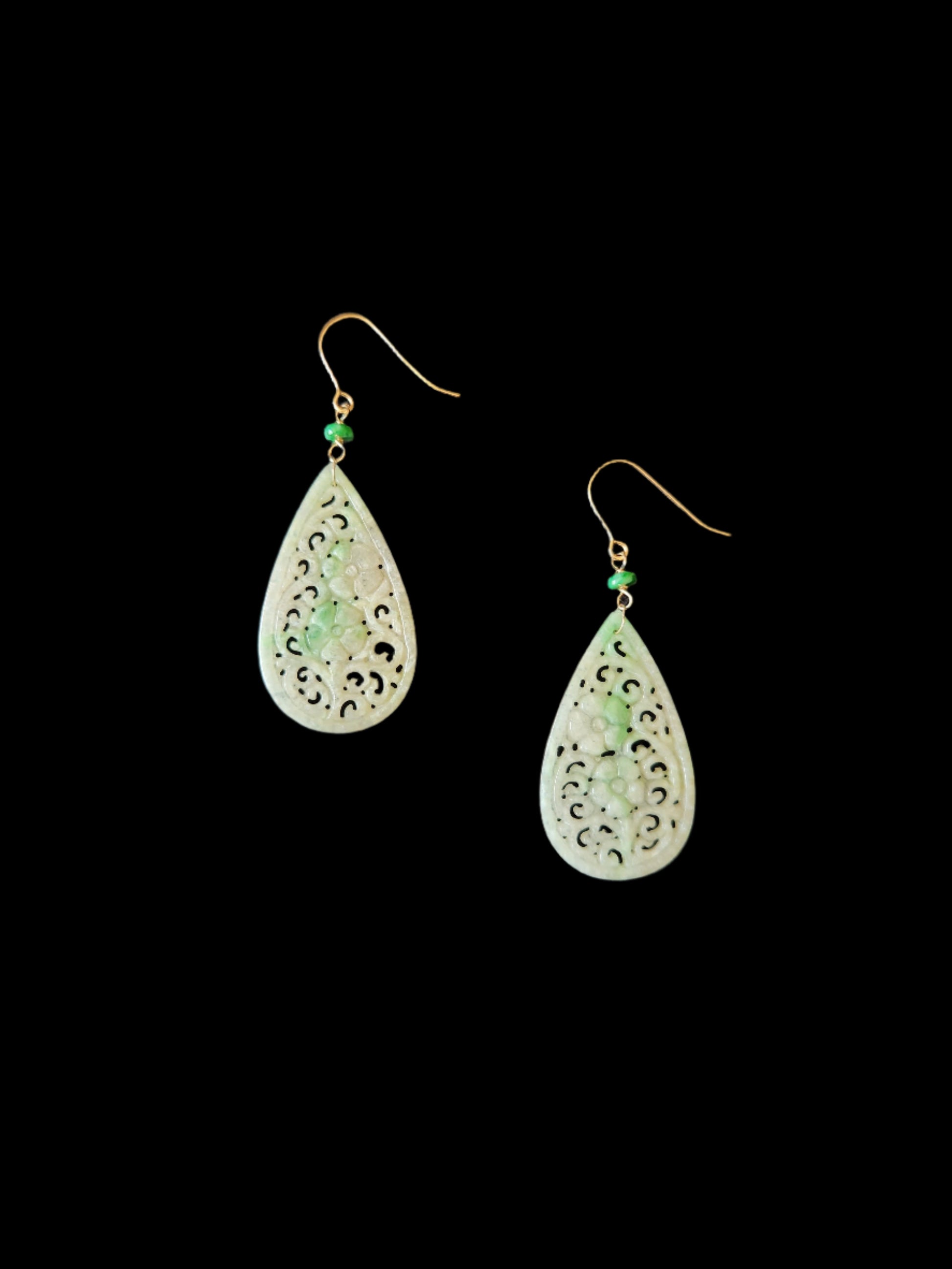 Jadeite Earrings - Openwork Style Teardrop