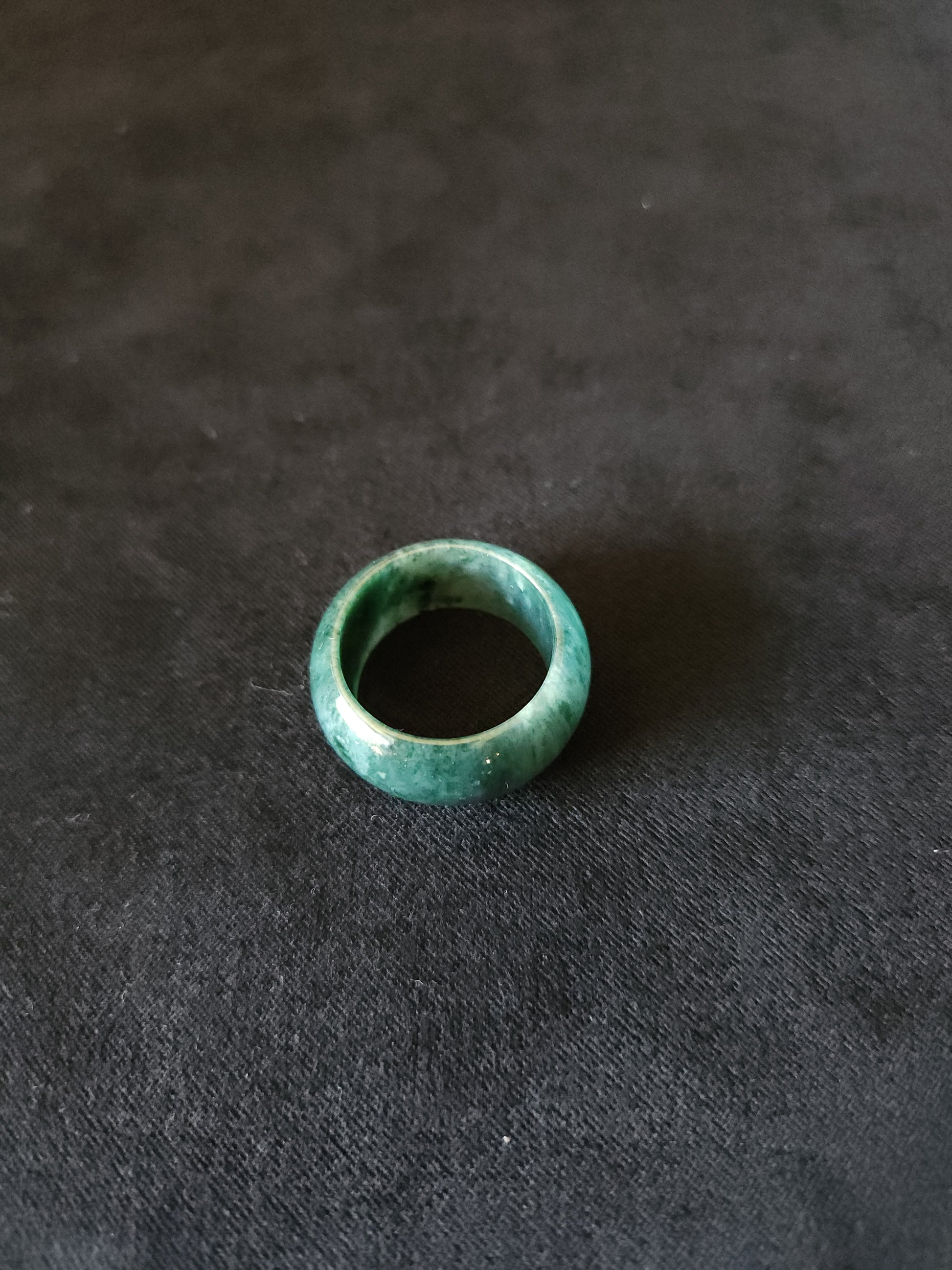 A standard opaque jadeite ring band in a mature dark blue-green.